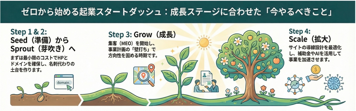 起業の「成長ステージ」ごとにやるべきことを整理し、